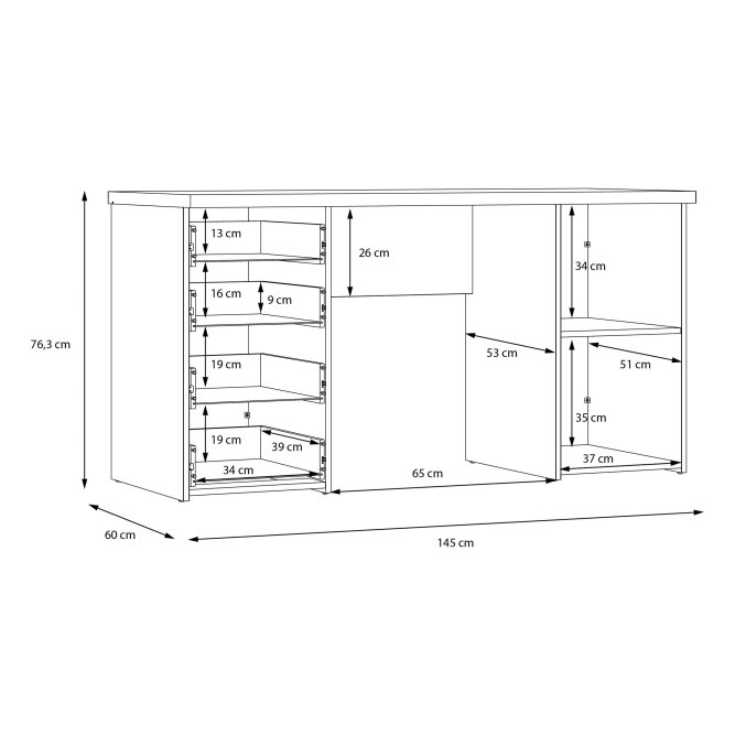 Išmatavimai: A: 76cm P: 145cm G: 60cm