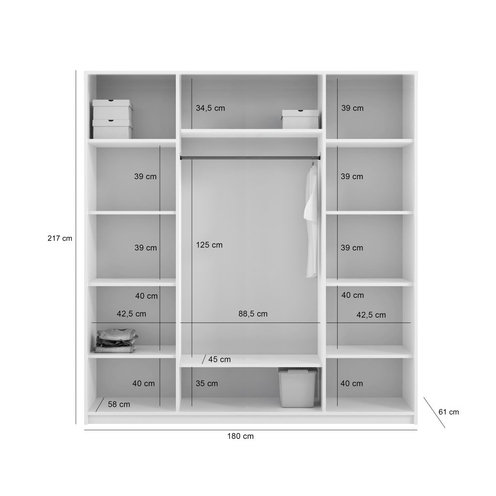 Aukštis: 217cm | Plotis: 180cm | Gylis: 61cm