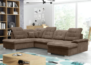 Nona - išskirtinio dizaino U formos minkštas kampas, kuris įtiks kiekvienam ieškančiam kokybės ir funkcionalumo. Gyvenamajame kambaryje baldas sukurs vietą, kur galėsite jaukiai praleisti laiką šeimos ar draugų apsuptyje, o esant poreikiui - baldą nesudėtingai išskleisite į miegamą padėtį. Minkštas atlošas ir reguliuojamos galvos atramos leis komfortiškai atsipalaiduoti, o ramaus tono spalva - lengvai derinti baldą Jūsų namų interjere.
