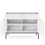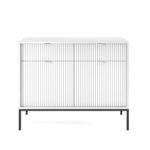 Įsimylėti iš pirmo žvilgsnio įmanoma! Frezuoti fasadų paviršiai, aukso spalvos rankenos ir metalinės kojos - akcentai, namuose sukursiantys darnią kompoziciją. "Nova" baldus lengvai priderinsite svetainės ar miegamojo kambariuose. Kolekcijoje rasite kelių dydžių komodas, konsolę-rašomąjį stalą, naktinius staliukus, žurnalinį staliuką. Baldų durų mechanizmas - užtikrinantis švelnų ir tylų uždarymą. Plokščių briaunos laminuotos ABS plastiku, apsaugančiu jas nuo neigiamo išorinio aplinkos poveikio. Džiaukitės kurdami išskirtinį, žavingą ir ryškų interjerą su "Nova"!