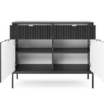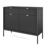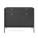 Įsimylėti iš pirmo žvilgsnio įmanoma! Frezuoti fasadų paviršiai, aukso spalvos rankenos ir metalinės kojos - akcentai, namuose sukursiantys darnią kompoziciją. "Nova" baldus lengvai priderinsite svetainės ar miegamojo kambariuose. Kolekcijoje rasite kelių dydžių komodas, konsolę-rašomąjį stalą, naktinius staliukus, žurnalinį staliuką. Baldų durų mechanizmas - užtikrinantis švelnų ir tylų uždarymą. Plokščių briaunos laminuotos ABS plastiku, apsaugančiu jas nuo neigiamo išorinio aplinkos poveikio. Džiaukitės kurdami išskirtinį, žavingą ir ryškų interjerą su "Nova"!