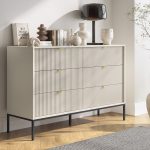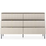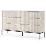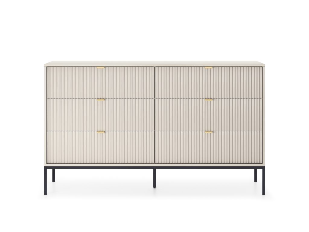 Įsimylėti iš pirmo žvilgsnio įmanoma! Frezuoti fasadų paviršiai, aukso spalvos rankenos ir metalinės kojos - akcentai, namuose sukursiantys darnią kompoziciją. "Nova" baldus lengvai priderinsite svetainės ar miegamojo kambariuose. Kolekcijoje rasite kelių dydžių komodas, konsolę-rašomąjį stalą, naktinius staliukus, žurnalinį staliuką. Baldų durų mechanizmas - užtikrinantis švelnų ir tylų uždarymą. Plokščių briaunos laminuotos ABS plastiku, apsaugančiu jas nuo neigiamo išorinio aplinkos poveikio. Džiaukitės kurdami išskirtinį, žavingą ir ryškų interjerą su "Nova"!