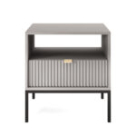 Įsimylėti iš pirmo žvilgsnio įmanoma! Frezuoti fasadų paviršiai, aukso spalvos rankenos ir metalinės kojos - akcentai, namuose sukursiantys darnią kompoziciją. "Nova" baldus lengvai priderinsite svetainės ar miegamojo kambariuose. Kolekcijoje rasite kelių dydžių komodas, konsolę-rašomąjį stalą, naktinius staliukus, žurnalinį staliuką. Baldų durų mechanizmas - užtikrinantis švelnų ir tylų uždarymą. Plokščių briaunos laminuotos ABS plastiku, apsaugančiu jas nuo neigiamo išorinio aplinkos poveikio. Džiaukitės kurdami išskirtinį, žavingą ir ryškų interjerą su "Nova"!
