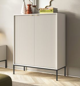 Įsimylėti iš pirmo žvilgsnio įmanoma! Frezuoti fasadų paviršiai, aukso spalvos rankenos ir metalinės kojos - akcentai, namuose sukursiantys darnią kompoziciją. "Nova" baldus lengvai priderinsite svetainės ar miegamojo kambariuose. Baldų durų mechanizmas - užtikrinantis švelnų ir tylų uždarymą. Plokščių briaunos laminuotos ABS plastiku, apsaugančiu jas nuo neigiamo išorinio aplinkos poveikio. Džiaukitės kurdami išskirtinį, žavingą ir ryškų interjerą su "Nova"!