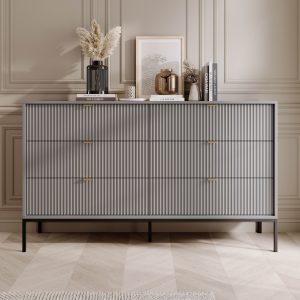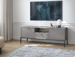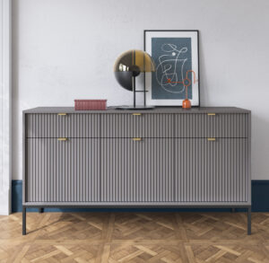 Įsimylėti iš pirmo žvilgsnio įmanoma! Frezuoti fasadų paviršiai, aukso spalvos rankenos ir metalinės kojos - akcentai, namuose sukursiantys darnią kompoziciją. "Nova" baldus lengvai priderinsite svetainės ar miegamojo kambariuose. Kolekcijoje rasite kelių dydžių komodas, konsolę-rašomąjį stalą, naktinius staliukus, žurnalinį staliuką. Baldų durų mechanizmas - užtikrinantis švelnų ir tylų uždarymą. Plokščių briaunos laminuotos ABS plastiku, apsaugančiu jas nuo neigiamo išorinio aplinkos poveikio. Džiaukitės kurdami išskirtinį, žavingą ir ryškų interjerą su "Nova"!
