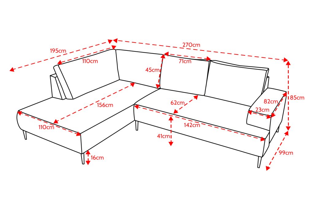 Išmatavimai: A: 85cm P: 270cm G: 195cm
