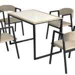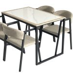 OLSEN stalas + 4 (I gr.) kėdės (White Marble/#160-01 Sonoma/378-08 Rusvas)
