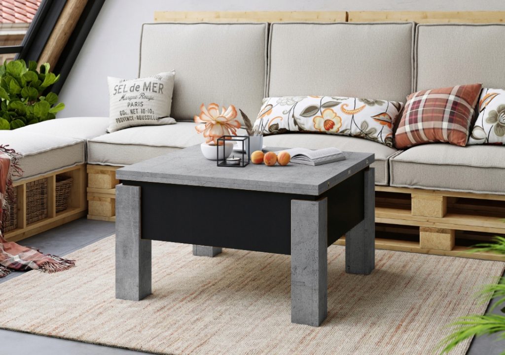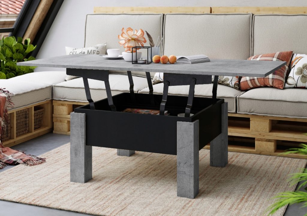 OSLO-N pakeliamas ir išskleidžiamas staliukas-transformeris su daiktadėže (Beton Millenium/Juoda)