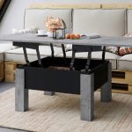 - OSLO-N pakeliamas ir išskleidžiamas staliukas-transformeris su daiktadėže (Beton Millenium/Juoda)