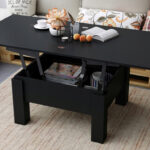 OSLO-N pakeliamas ir išskleidžiamas staliukas-transformeris su daiktadėže (Juoda)