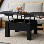 OSLO-N pakeliamas ir išskleidžiamas staliukas-transformeris su daiktadėže (Craft Zloty/Juoda)