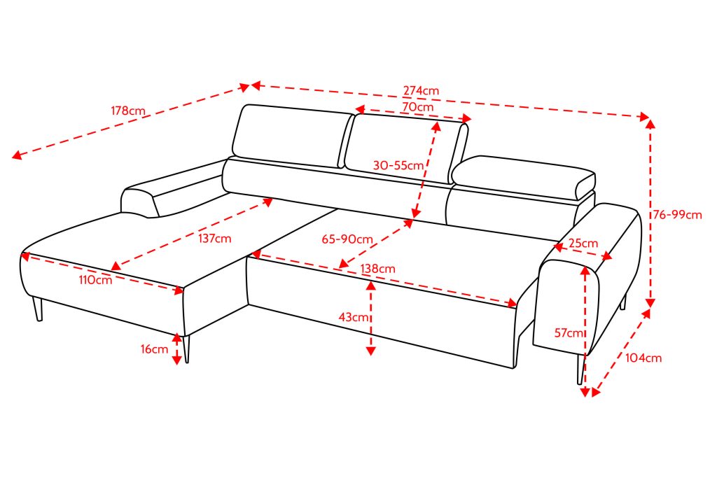 Išmatavimai: A: 76-99cm P: 274cm G: 178cm