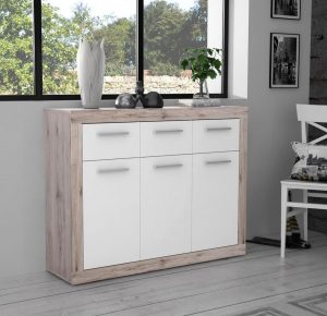 NORDI NKSZ107 komoda-indauja (Blizgus baltas/Dab Riviera)