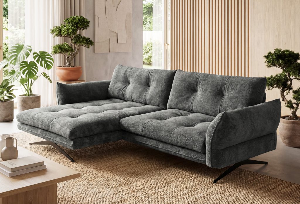 Kairinė pusė?Jeigu stovint veidu į baldą, šezlongas yra kairėje pusėje, tuomet minkštas kampas laikomas kairiniu ir žymimas raide K.