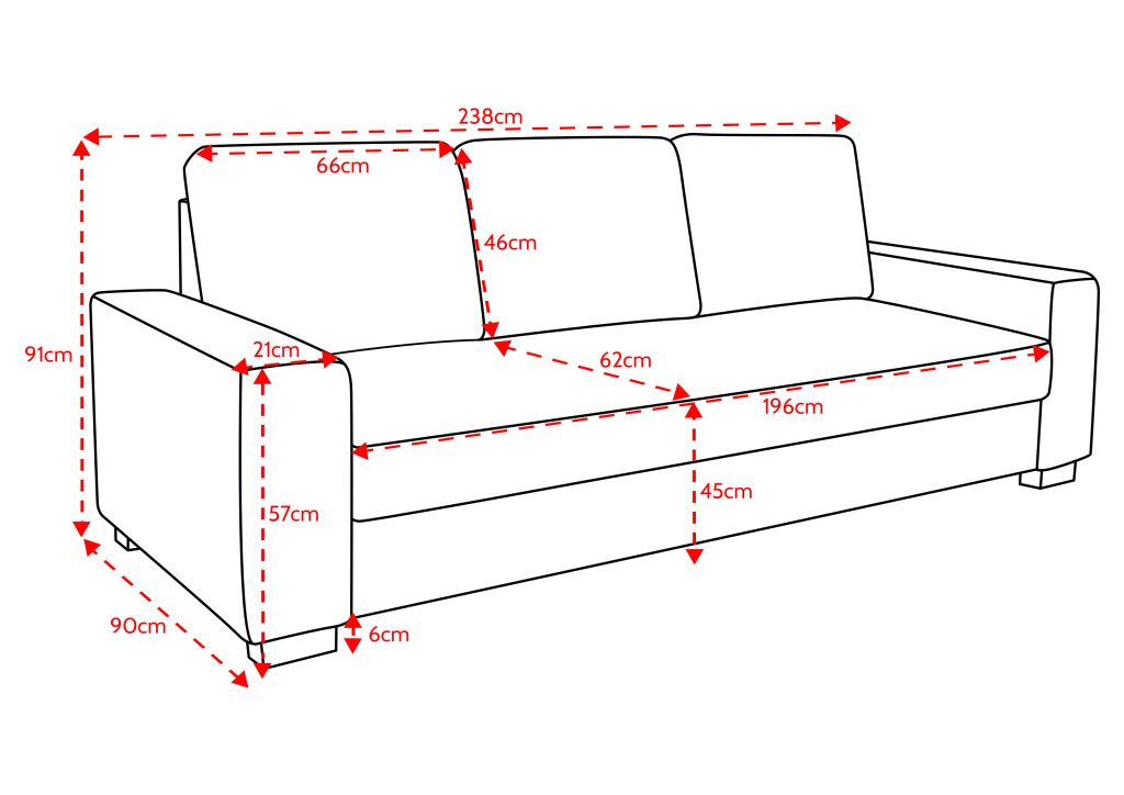 Išmatavimai: A: 91cm P: 238cm G: 90cm