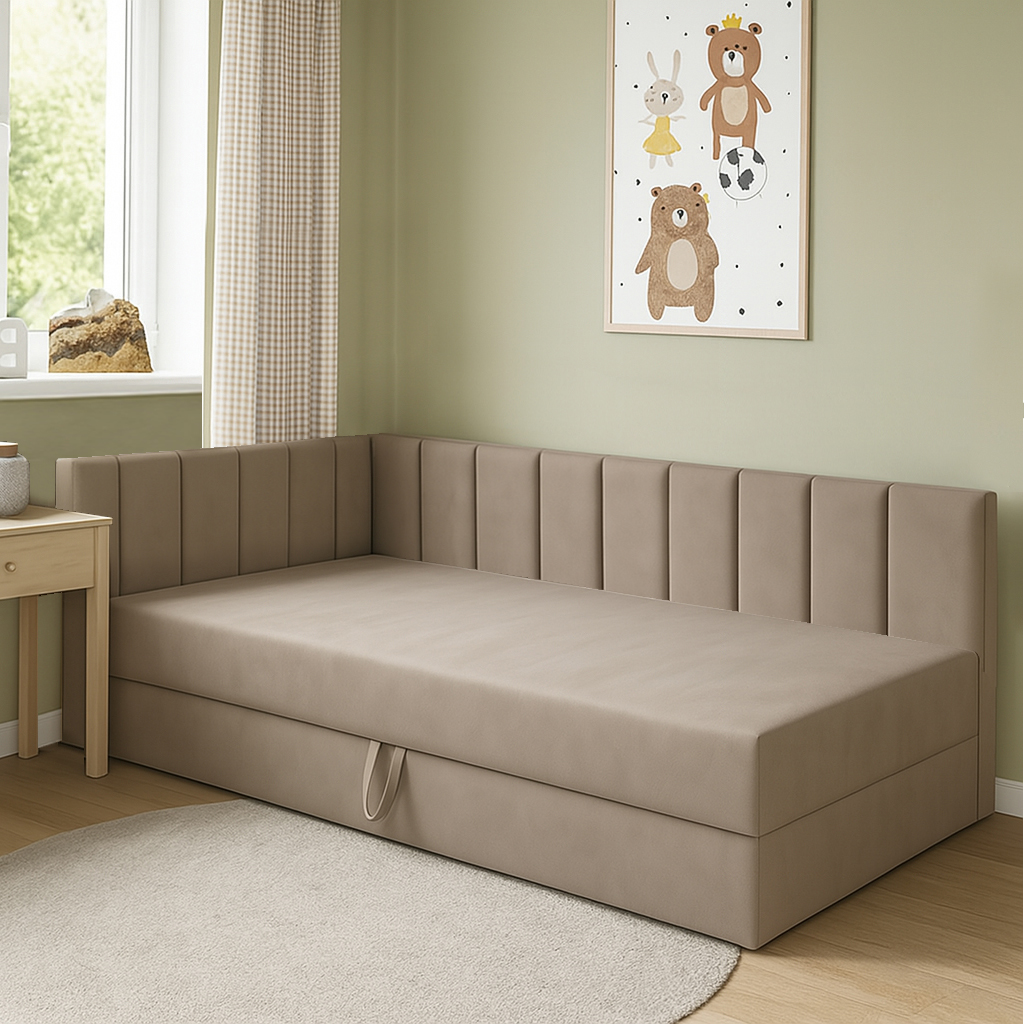 Kairinė pusė?Jeigu stovint veidu į baldą, šezlongas yra kairėje pusėje, tuomet minkštas kampas laikomas kairiniu ir žymimas raide K.