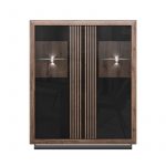 Prabanga dvelkianti svetainės baldų sistema - Savona. Vertikalios tamsinto ąžuolo spalvos juostelės, neįprastai puošia juodą blizgų fasadą. Sistema susideda iš svetainės staliuko, pakabinamos lentynos, taip pat vitrinų ir komodų, kuriose įmontuota „push to open“ atidarymo funkcija. Nepaisant to, kad baldai tamsūs, juos puikiai išryškina LED apšvietimas. Su kolekcija Savona susikursite prabangų interjerą savo namuose, kuris atsiskleis kiekvienoje baldų detalėje!