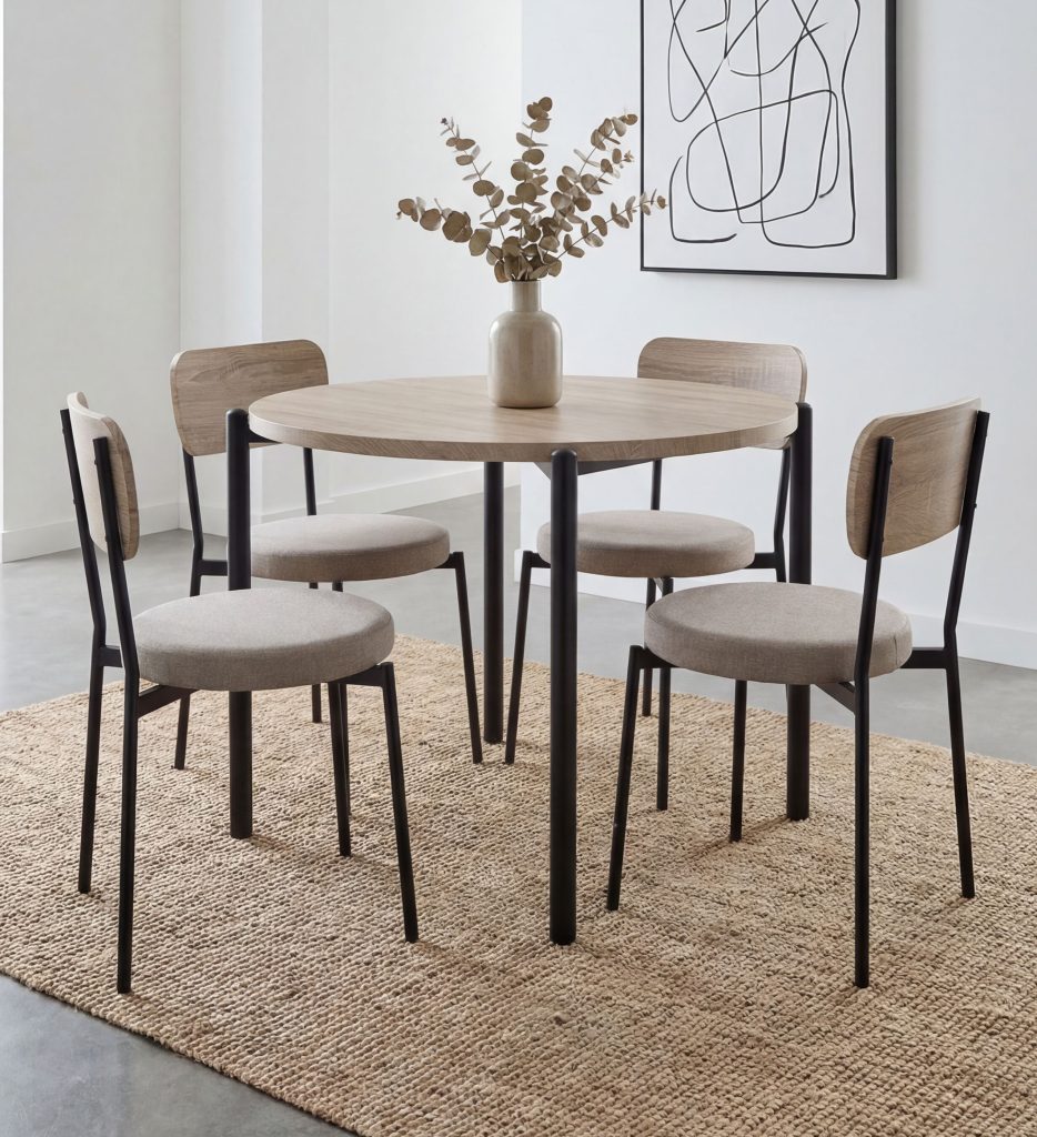 SERENADA apvalus stalas + 4 (I gr.) kėdės (21269-13 Sonoma/378-08 Rusvas)