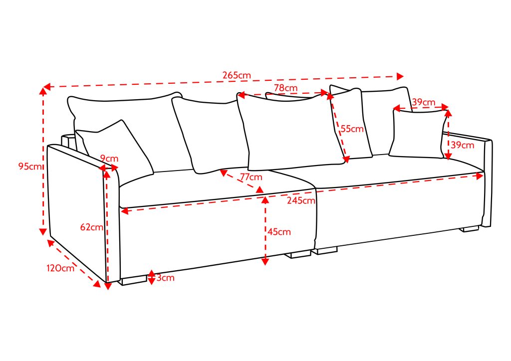 Išmatavimai: A: 95cm P: 265cm G: 120cm