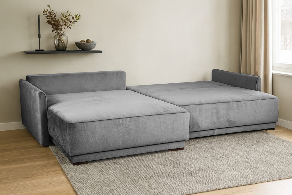 Kairinė pusė?Jeigu stovint veidu į baldą, šezlongas yra kairėje pusėje, tuomet minkštas kampas laikomas kairiniu ir žymimas raide K.