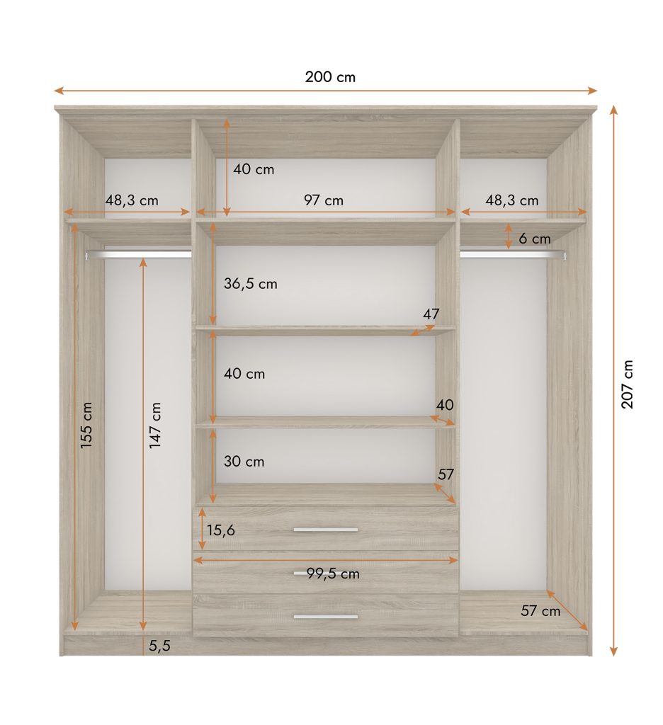 Išmatavimai: A: 208cm P: 100cm G: 64cm