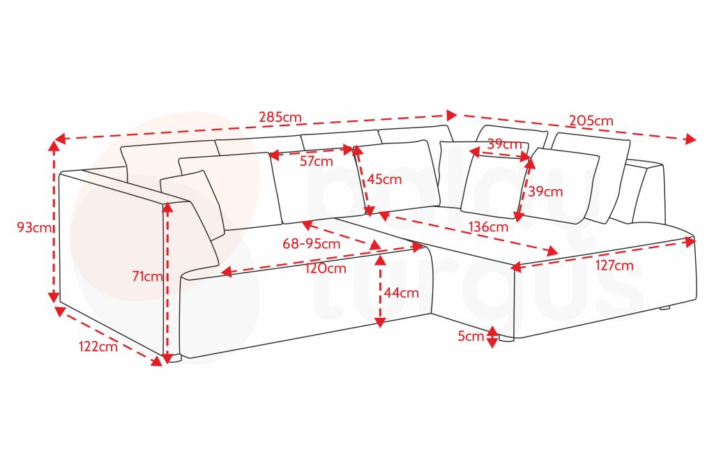 Išmatavimai: A: 93cm P: 285cm G: 205cm