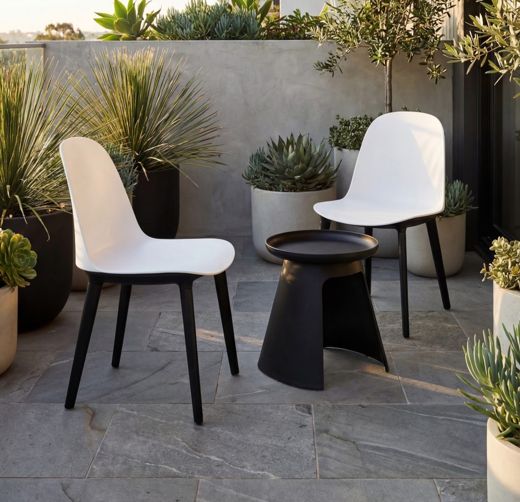 TOWER apvalus plastikinis lauko staliukas (Juodas)