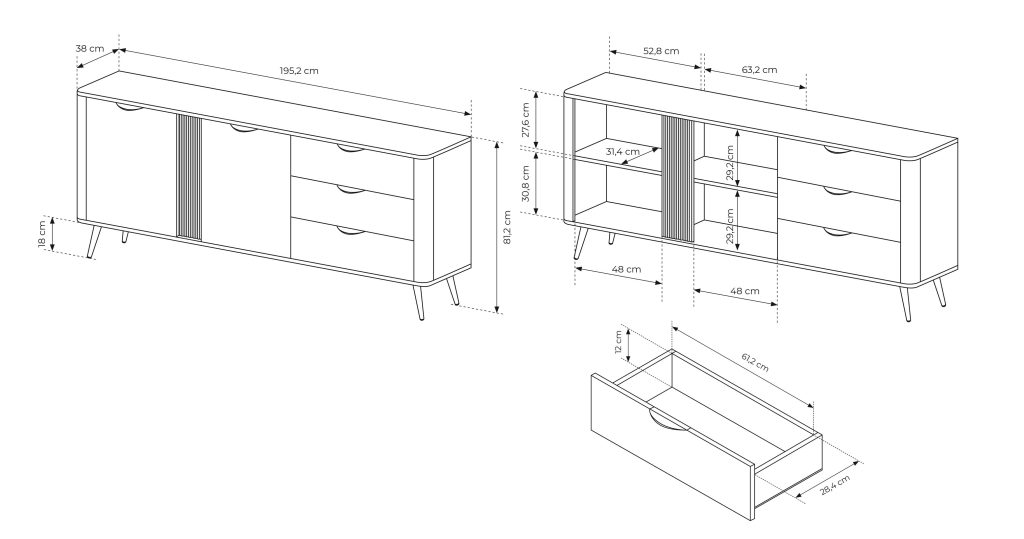Išmatavimai: A: 81cm P: 163cm G: 38cm