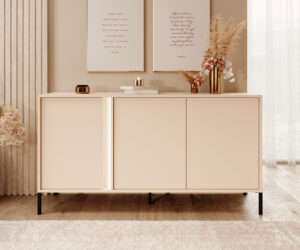 <div dir="auto">Elegancija paprastose geometrinėse formose. Išskirtinis kolekcijos bruožas - vertikalus juostinis LED apšvietimas. "Dast" siūlo galybę variantų daiktų laikymui - įvairių dydžių komodos, erdvi spinta su patogiu išplanavimu, TV komoda ir žurnalinis staliukas su dviem stalčiais. Jaukūs ir patogūs namai tik su "Dast"!</div>